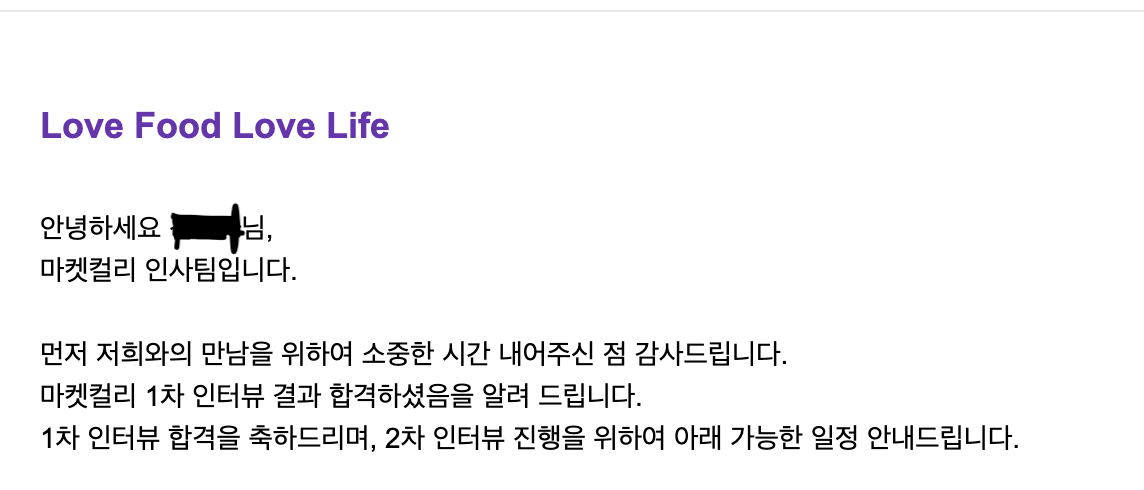 1차 면접이 끝나고 약 1주일 뒤에, 결과가 나왔다.